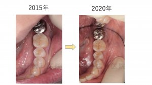 やはり事前に起こりうることを患者さんへしっかり伝えておくことやラバーダムやzooなどを用いて防湿をしっかり行なって接着をしていることや、かみ合わせのチェックを定期検診で欠かさずに拝見できていることが長期間良好な状態を維持している要因なのでしょう。