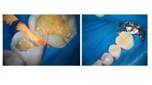 2級インレー修復のやり直しでは金属によるインレー修復を選択すると窩洞がどんどん大きくなっていってしまい。しまいには全部削ってかぶせるクラウンへと変貌してしまいます。コンポジットレジンによる直接修復の一番の利点は歯質を温存できることだと私は考えています。