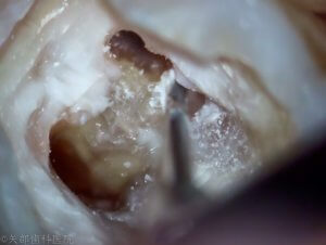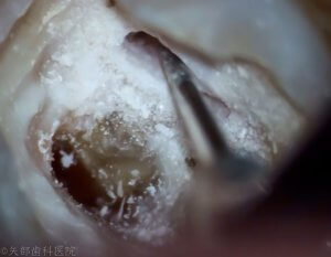 これにより軟化象牙質の徹底した除去が行えます。軟化象牙質をしっかり除去せずに根管治療を行っても症状が治らない場合があります。
