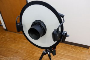 ポイントはマクロツインライト MT-26EX-RTを内側に向けているということです。こうすることで忍者レフに光を一度当て光の質を柔らかくしています。